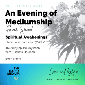 After each floral demons, Pietro Politano – The Happy Medium – will take to the stage to offer his Mediumship skills and deliver messages to those in the audience.